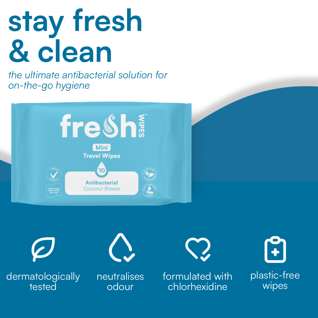Each mini pack contains 10 thick, extra-wet wipes, ideal for travel, festivals, work bags, gym kits, school bags or glove