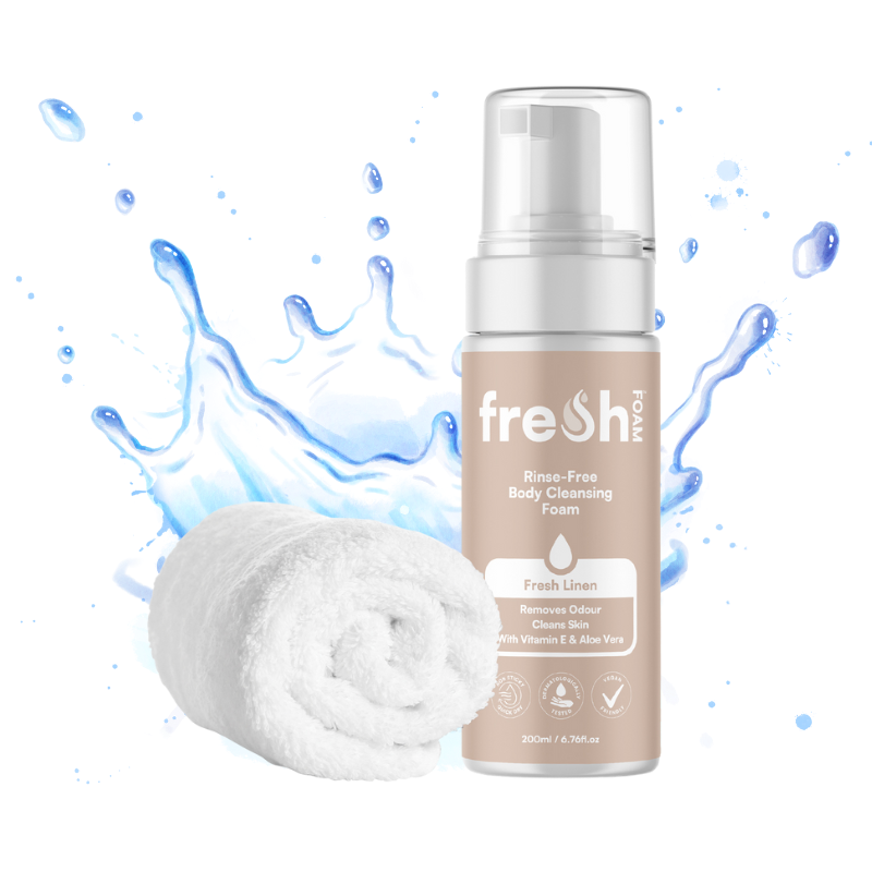 Our Rinse-Free Body Cleansing Foam is safe to use all over the body, including intimate areas when showering isn't possible. It removes odour-causing bacteria and leave you feeling clean, fresh, and confident.